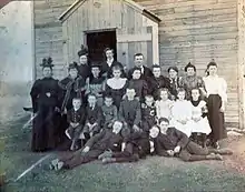 Three industrial boarding schools for First Nations adolescents were established in 1883, including one on the south side of Mission Lake across from Lebret on the north side of the lake, as well as Battleford and High River.[25]