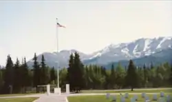 Fort Richardson National Cemetery is a United States National Cemetery located on the Fort Richardson United States Army installation near Anchorage, Alaska. It encompasses 39 acres (16 ha) and as of the end of 2020, it had more than 8,000 interments. For much of the year, the gravesites are inaccessible due to snowfall.