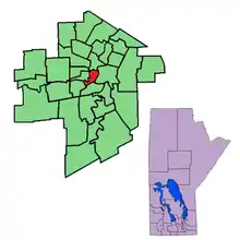 Fort Rouge is a provincial electoral division in the Canadian province of Manitoba. It was created by redistribution in 1957, and formally came into existence in the general election of 1958. The riding was eliminated in 1989, and re-established in 1999. It is located in the central section of the City of Winnipeg.
