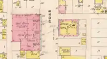 A fire swept through a large portion of the town's business section on January 21, 1913.[8] It is thought to have started in the Queen's hotel, before quickly leaping across the street to nearby buildings.[8] The fire department struggled to start their engine, and their hose froze; by the time they fixed their equipment, the fire was too large to be contained.[8] Five businesses, primarily located in the Fetherstonhaugh Block, were lost to the fire — costing a total of $24,000 in damages.[8] In the spring of 1913, construction began on $69,500 worth of buildings in the business section.[8] These new buildings included the Williamson Block, which replaced the Fetherstonhaugh Block, and a new Queen's Hotel.[8]
