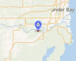 The site is located on the banks of the Kaministiquia River at Point de Meuron. This point is a few kilometres upstream from the original fort's site, Fort Kaministiquia, which has been built over as part of the city of Thunder Bay. Point de Meuron has separate historical significance, as it was the location of an Hudson's Bay Company post of the same name.