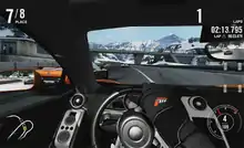 New to the Forza series is a feature known as Autovista. It is designed to allow players to walk around and explore inside cars. This feature allows players to view minute details such as brake pads, transmission, tyres, engine components, and interior details. The player can point at certain features, such as headlights, wheels and the engine for further information about them via audio recording.[5] It can be controlled via Kinect or a game controller.[6] Only 24 cars in the game support the Autovista feature, as it is primarily for sports cars, classic cars, and dream cars.[7] The graphics used to create these cars are formed using image-based lighting which allowed the developers to create perfect reflections, and would better immerse the car in the environment both when racing on a track or in the garage or Top Gear studio when viewing a car.[8]