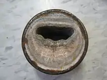 ![]() Brass tube with corrosion traces (cut open) |