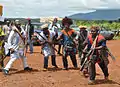 Foumban or Fumban is a city in Cameroon, lying north east of Bafoussam. It has a population of 83,522 (at the 2005 Census). It is a major town for the Bamoun people and is home to a museum of traditional arts and culture. Foumban is known for its political significance in the formation of Cameroon's history and its cultural, tourism and economic potential. There is also a market and a craft centre, while Foumban Royal Palace contains a museum with information on Ibrahim Njoya who invented a new religion, Bamum script, and the artificial language Shümom.[1]