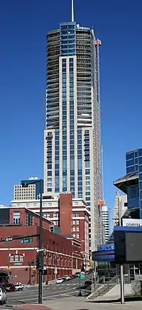 Four Seasons Hotel and Private Residences Denver is a 565 feet (172 m) tall skyscraper in Denver, Colorado. This makes it the 4th tallest building in Denver. It was completed in 2010 and has 45 stories and 766,487 sq ft (71,209 m2) of usable floor space. It is estimated to cost $350 million, or $456.63 per sq. ft., which would make it the most expensive privately owned building ever constructed in Denver. It is a mixed-used building, containing a pool, fitness center and amenities.
