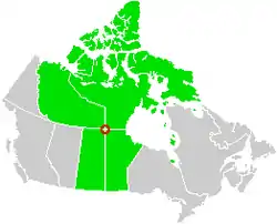 The four corners is a quadripoint near 60° N 102° W where four Canadian provinces or territories meet.[1][2] These are the provinces of Manitoba and Saskatchewan and the territories of the Northwest Territories and Nunavut.[1] It came into being with the creation of Nunavut on April 1, 1999.