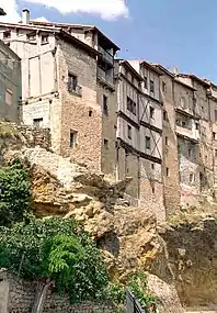 These houses, with ground floor and two or three additional floors and, eventually a wine cellar, are supported by each other, creating streets at different height. In some cases these house hang from the rock. Their structure is made of walls of limestone within a wood structure.