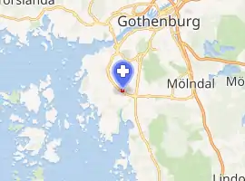 Frölunda specialist hospital (Swedish: Frölunda Specialistsjukhus) is located in Frölunda, right next to Frölunda torg, approximately nine kilometres south-west of central Gothenburg. The hospital primarily operate with elective care, with specialist in otolaryngology, neurology, gynaecology, orthopedic surgery, medicine, dermatology, ophthalmology, surgery, and radiography. The hospital was inaugurated in 1968 as a local hospital for people living in Tynnered, Frölunda, and Älvsborg. Today, 190 people work at the hospital which is owned by Västra Götaland Regional Council.