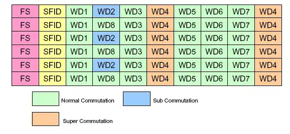 Different types of commutation within a frame synchronized PCM stream