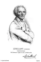 François Levaillant (born Vaillant, later in life as Le Vaillant, "The Valiant") (6 August 1753 – 22 November 1824) was a French author, explorer, naturalist, zoological collector, and noted ornithologist. He described many new species of birds based on birds he collected in Africa and several birds are named after him. He was among the first to use colour plates for illustrating birds and opposed the use of binomial nomenclature introduced by Carl Linnaeus, preferring instead to use descriptive French names such as the bateleur (meaning "tumbler or tight-rope walker") for the distinctive African eagle.