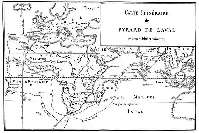 François Pyrard de Laval (French pronunciation: [fʁɑ̃swa piʁaʁ də laval]; c. 1578 – ca. 1623) was a French navigator who is remembered for a personal written account of his adventures in the Maldives Islands from 1602 to 1607, which was part of a ten-year sojourn (1601–1611) in South Asia, et al. He was a native of Laval, and was a cousin to theologian Pierre Pyrard (1581–1667).