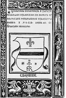 In 1512 Micalović printed two Catholic prayer books in Venice, in the printing house of Giorgio Rusconi (Zorzi Ruskoni) of Milan.[25] One book is known as Officio (Officio Beatae Mariae Virginis) and the other as Molitvenik (Officio Sanctae Brigittae).[26] Both books were printed in Cyrillic script with elements of Glagolitic[27] in Shtokavian dialect after being translated from Chakavian.[28] On 18 September 1512, immediately after his return to Ragusa, Micalović stated that two cases of Slavic books belonged to Đuro, father of Petar Šušić.[29]