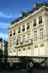 Qatar has had an embassy in France since 1972, situated in Rue de Tilsitt, Paris. The current Qatari ambassador to France is Ali bin Jassim Al-Thani who succeeded Khalid bin Rashid Al-Mansouri who held post from 2017 to 2019.[3] France's embassy is based in the West Bay district of Doha,[4] and is headed by the French ambassador to Qatar, Franck Gellet.[5] He is the successor of Eric Chevallier.[6]