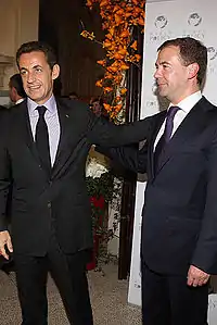 During the 2008 Georgia-Russia War, Nicolas Sarkozy did not insist on territorial integrity of Georgia. Moreover, there were no French protests when Russia failed to obey Sarkozy's deal to withdraw from Georgia and recognizing governments in Georgia's territories.[45]