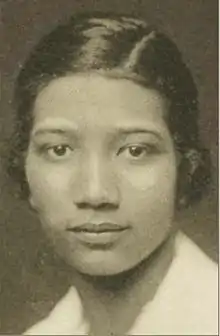 Frances Marshall Eagleson (1898—1987) was born in Elizabeth, Kentucky, United States, on July 17, 1898 and raised in Rushville, Indiana. Marshall was the only "colored" student in her graduating class at Rushville High School in 1915, enrolling at Indiana University that fall. Though Marshall entered school in Bloomington on a "financial shoestring," she was able to subsidize the cost of her education by living with a stone executive named Hiram P. Ridley and his family, where she cooked and cleaned in exchange for room and board.[1] The first black woman to graduate from Indiana University, she graduated in 1919 with an associate degree in English and a teaching certificate. After a year of teaching in Florida she began teaching English at North Carolina Central College at Durham in 1921, but went on to earn a graduate degree in educational administration from the University of Chicago and Columbia. Eventually working as a registrar and admissions officer for North Carolina Central University from 1928 to retirement in 1964 (Currently has co-ed dormitory named in her honor - Eagleson Hall). After retirement, Marshall worked as the registrar for two other colleges: Florida Memorial College in St. Augustine, Florida, and Spelman College in Atlanta, Georgia.