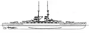 As well as the budgetary problems, the senior Italian navy commanders could not agree on the shape of the post-war Regia Marina. One faction advocated a traditional surface battle fleet, while a second believed a fleet composed of aircraft carriers, torpedo boats, and submarines would be ideal. A third faction, led by Admiral Giovanni Sechi, argued that a balanced fleet with a core of battleships and carriers was the most flexible option.[17] To secure budgetary space for new construction, Sechi drastically reduced the number of older ships in service; he also cancelled the battleships of the Francesco Caracciolo class.[18] Francesco Caracciolo was sold on 25 October 1920 to the Navigazione Generale Italiana shipping company. The firm planned to convert her into a merchant ship, but the work was deemed too expensive, and so she was temporarily mothballed in Baia Bay outside Naples.[3][19]