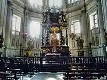 Like his famous elder cousin, Carlo Borromeo, author of a guide to religious architecture, Federico Borromeo promulgated classical or antique models. In Richini he found a deviation to the Baroque, as exemplified by his churches of Santa Maria alla Porta and of San Giuseppe. This small church in central Milan (consecrated 1616) has a highly decorated facade (finished 1630) with volutes. The interior is two Bramante-inspired squares.