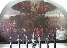 Another miracle occurred during the construction. A pregnant lady asked the masons what they were building and when she heard of the Fourteen Holy Helpers she laughed and said that she would rather give birth to fourteen babies than believe in some Holy Helpers‘ existence. After claiming that she went to the town gate (now Holy Gate) and really gave birth to eleven boys and three daughters – all baptized in the names of the Helpers.