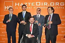 A former member of the national executive of the UCD Youth Wing,[4] Marhuenda joined the People's Party (PP) in 1995, and became a member of the Parliament of Catalonia after the 1995 Catalan regional election.[5] He resigned to his seat in 1996, to become chief of staff of the Minister of Public Administrations, chief of Staff of the Minister of Education and Culture in 1999, and director general of Relation with the Cortes in 2000, always under the aegis of Mariano Rajoy.[5]