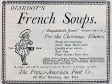 The company was founded as Franco-American Food Company by Alphonse Biardot, who immigrated to the United States from France in 1880. In 1886, he and his two sons opened a commercial kitchen in Jersey City, New Jersey, featuring the foods of his native country. The company proved a success, particularly with its line of canned soup and pasta, and it was acquired by Campbell's in 1915.