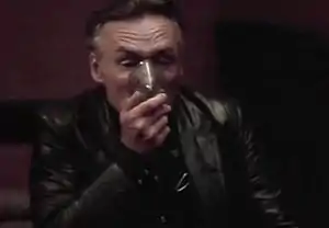 Frank Booth is a fictional character and the main antagonist in David Lynch's 1986 psychological thriller Blue Velvet, portrayed by Dennis Hopper. A violent drug dealer, he has kidnapped the family of lounge singer Dorothy Vallens, holding them hostage in order to force her into becoming his sex slave. Their encounters are characterized by Frank huffing an unknown gas from a tank he carries with him. This causes him to exhibit a split personality between two individuals he identifies as "Baby" and "Daddy," whose personas he assumes to engage in acts of ritualistic rape. One of Frank's associates is a police detective nicknamed "The Yellow Man" (for his distinctive yellow sport coat), who helps Frank by killing rival drug dealers. The Yellow Man later steals their supplies from the evidence room, so Frank can sell them himself.