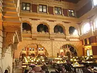 Furness designed custom interiors and furniture in collaboration with Philadelphia cabinetmaker Daniel Pabst. Examples are in the collections of the Philadelphia Museum of Art;[15][16] the University of Pennsylvania;[17] the High Museum of Art in Atlanta, Georgia;[18] the Victoria and Albert Museum in London,[19] and elsewhere. Mark-Lee Kirk's set designs for the 1942 Orson Welles film The Magnificent Ambersons seem to be based on Furness's ornate Neo-Grec interiors of the 1870s.[3]: 108 A fictional desk designed by Furness is featured in the John Bellairs novel The Mansion in the Mist.