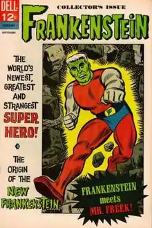 Frankenstein is a superhero comic book series published by Dell Comics, based on the literary and movie character Frankenstein's monster. The book was part of a line of three superhero comics based on the Universal Monsters characters; the other two were Dracula and Werewolf.[1]