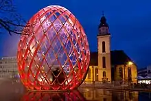 ![]() ![]() ![]() ![]() ![]() ![]() Clockwise from top: Frankfurt's skyline; European Central Bank; Romans' Hill with Old St Nicholas Church at night; Romans' Hill; Chicken Market in the New Old Town; and Old Opera | |
