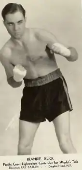 Frankie Klick (May 5, 1907 – May 18, 1982) was an American boxer who became a World Jr. Lightweight boxing champion when he defeated "Kid Chocolate", on December 25, 1933 at the arena in Philadelphia, Pennsylvania, in a seventh-round technical knockout. In his career he fought the exceptional champions Henry Armstrong once, Barney Ross twice and Tony Canzoneri four times.[1] His managers were Joe Doran and Ray Carlin.[2]