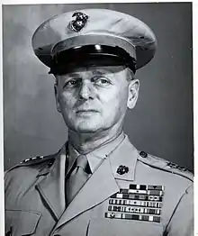 Appointed a brigadier general in August 1944, he served as assistant division commander of the 4th Marine Division, until late 1945, and in this capacity participated in the Battle of Iwo Jima, where he was awarded the Bronze Star.