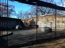 The Long Crouch Woods, the location of the historic "Bear Dens", is also located within the park. Once the focus of the zoo, the Bear Dens were designed and built in 1912, and were planned to have a small collection of domestic animals. The original grounds featured a grand staircase leading to a large courtyard, framed by several large iron bear cages. One of these cages featured a detailed stone sculpture of bears and the crest of the City of Boston.[5] Plans of expanding the Long Crouch Woods section of the zoo never came to fruition. As the grounds deteriorated, and as the Parks Department neglected many of the landscape's most basic management needs, the Bear Dens became too expensive to maintain. The exhibit area was officially closed in 1954. It was later lopped off of the zoo property permanently in 1958, when the Metropolitan District Commission took over management of the zoo.