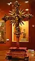 The silver collection contains just under 1,300 pieces from the 15th to 19th centuries, and is recognized as one of the most important in Mexico. The pieces include repoussé work, chiseling, graffito and filigree, along with pieces set with precious and semi-precious stones and those containing enamels and others with gold. Most are pieces related to Catholic liturgy and include censers, chalices, lamps, candlesticks, ciboriums, crosses and tabernacles, but there are also non-religious pieces such as gold cigarette cases, cutlery, plays and trays.[10]