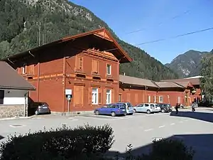 The timber station building built in 1871 has kept its original structure almost unchanged (except for the interiors, which have been heavily remodeled, and some external additions). This makes it unique, both on the Brenner Railway and the Puster Valley Railway. Inside it houses the ticket office and the office of the station master, one of whom is always on duty, and a bar-restaurant.[3]