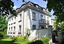 The Frascati neighbourhood was inhabited by many notables and dignitaries, among them nobles, financiers, business tycoons, generals and statesmen like the much-detested Nikolay Novosiltsev, the council commissar in the Congress Kingdom of Poland.[13] With the private gardens parceled in 1929, several modern villas were erected north of the Polish parliament, around today's Nullo, Frascati, Konopnicka and Senacka streets.[14] These were once owned or occupied by Warsaw's wealthiest and most important residents.[14][5] The majority of buildings and infrastructure survived the Second World War intact, particularity the ornate tenement houses at Wiejska Street.[15] It remained an exclusive suburb under the Polish People's Republic, frequently visited by heads of state and communist officials.[16] The large headquarters building of the Polish United Worker's Party (PZPR) was completed in 1952 on Frascati's northern edge.