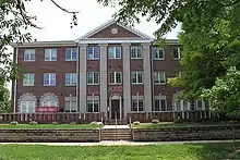 Fraternities represented the intersection between dining clubs, literary societies and secret initiatory orders such as Freemasonry. Their early growth was widely opposed by university administrators, though the increasing influence of fraternity alumni, as well as several high-profile court cases, succeeded in largely muting opposition by the 1880s.[5] The first fraternity meeting hall, or lodge, seems to have been that of the Alpha Epsilon chapter of Chi Psi at the University of Michigan in 1845, leading to a tradition in that fraternity to name its buildings "lodges". As fraternity membership was punishable by expulsion at many colleges at this time, the house was located deep in the woods.[7] The first residential chapter home, built by a fraternity, is believed to have been Alpha Delta Phi's chapter at Cornell University, with groundbreaking dated to 1878.[8] Alpha Tau Omega became the first fraternity to own a residential house in the South when, in 1880, its chapter at the University of the South acquired one.[9] Chapters of many fraternities followed suit, purchasing and, less often, building them with support of alumni. Phi Sigma Kappa's chapter home at Cornell, completed in 1902, is the oldest such house still occupied by its fraternal builders.[10]
