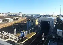 Fratton railway station was planned and built to serve as an interchange station between Portsmouth and the new one-and-a-quarter mile (2 km) long Southsea Railway branch line, built to serve the fashionable Victorian seaside resort of Southsea. It was built with an additional island platform to the south of the station's three main platforms, which specifically served the Southsea Railway and was reached by a staircase leading from the main overhead footbridge.[5] This island platform and staircase was removed after the Southsea Railway was closed, its former location now has a modern train washing facility built over it.
