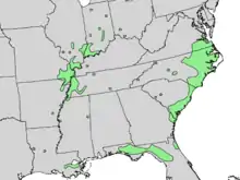 | Close-up of natural range of Fraxinus profunda | |