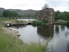 - Cross of Vale de Sancha (Portuguese: Cruzeiro de Vale da Sancha) - located in the parish of Vale da Sancha, along a sideroad across from the Flagosa ravine, in the shadow of the Outeiro do Alto do Marmeleiro in Vale da Sancha; it is in the extreme northern part of the parish, near the intersection between the municipal road to Macedinho and the roadway to the Chapel of Nossa Senhora do Aviso.[7] The pillory-cross of granite stands on rectangular platform of three steps, surrounded by a niche/altar with inscribed carving of IHS, and octagonal cross in cement.[7] Likely constructed in the 17th century, during the 1980s the cross was replaced with a cement replica.[7]