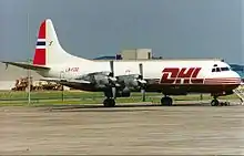 The airline soon signed a contract with DHL, with most of these flights being based out of Brussels Airport. This increased the business sufficiently that Fred. Olsen took delivery of a fourth Electra in 1991.[33] By 1996 the company was operating six Electras.[12] Fred. Olsen was responsible for the maintenance of the Partnair Convair 580 which crashed as Partnair Flight 394 on 8 September 1989. Despite that the accident was caused by fraudulent aircraft parts, no-one was charged with criminal offenses.[34]