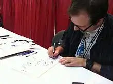 ![]() Fred Gallagher sketching at an autograph booth at Anime Expo 2011. | |