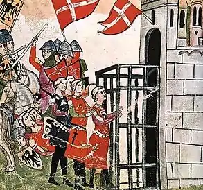 Despite initially appearing that the council could end with a compromise, the intervention of Ranieri, who had a series of insulting pamphlets published against Frederick (in which, among other things, he defined the emperor as a heretic and an Antichrist), led the prelates towards a less accommodating solution.[46] One month later, Innocent IV declared Frederick to be deposed as emperor, characterising him as a "friend of Babylon's sultan", "of Saracen customs", "provided with a harem guarded by eunuchs", like the schismatic emperor of Byzantium, and in sum a "heretic".[47]