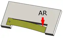 The following illustrations depict the type of reed typical of harmonicas, pitch pipes, accordions, and reed organs as it goes through a cycle of vibration. One side of the reed frame is omitted from the images for clarity; in reality, the frame completely encloses the reed. Airflow over one side of the reed (labeled “AR”) creates a region of low pressure on that side (see the Bernoulli's principle article for details), causing the reed to flex towards the low-pressure side. The reed frame is constructed so that the flexing of the reed obstructs the airflow, which reduces or eliminates the low-pressure region and allows the reed to flex back.[1]