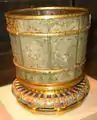 One of the most well-known exhibits at the Freer is The Peacock Room, an opulent London dining room painted by Whistler in 1876–77. The room was designed for British shipping magnate F.R. Leyland[11] and is lavishly decorated with green and gold peacock motifs. Purchased by Freer in 1904 and installed in the Freer Gallery after his death, The Peacock Room is on permanent display.
