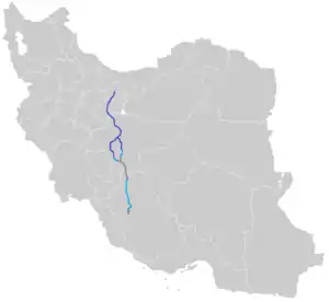 Freeway 7 (also known as Persian Gulf Highway) is a freeway in central Iran. It starts from Jahad Square at the south end of Kazemi Expressway and Azadegan Expressway in Tehran. It then passes Behesht-e Zahra, Imam Khomeini Int'l, Qom, Kashan, Natanz, Shahinshahr, Najafabad and ends northeast of Zarrinshahr in a junction with Road 51 and Zobahan Freeway. However, there has been construction after the junction and so far, 7 kilometres (4.3 mi) has been completed. There are also plans to connect the freeway to Shiraz.