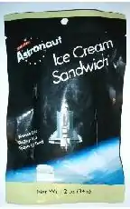 Freeze-dried ice cream, also known as astronaut ice cream or space ice cream, is ice cream that has had most of the water removed from it by a freeze-drying process, is sealed in a pouch, and requires no refrigeration. Compared to regular ice cream, it can be kept at room temperature without melting and is more brittle and rigid, but still soft when bitten into. It was developed by Whirlpool Corporation under contract to NASA for the Apollo missions.[1][2] However, it was never used on any Apollo mission. Freeze-dried foods were developed so that foods could be sent on long-duration spaceflights, as to the Moon, and to reduce the weight of the water and oxygen normally found in food.[1]