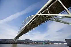 The Fremont Bridge is a steel tied-arch bridge over the Willamette River located in Portland, Oregon, United States. It carries Interstate 405 and US 30 traffic between downtown and North Portland where it intersects with Interstate 5. It has the longest main span of any bridge in Oregon and is the second longest tied-arch bridge in the world (after Caiyuanba Bridge across the Yangtze River, China).[2] The bridge was designed by Parsons, Brinckerhoff, Quade and Douglas, and built by Murphy Pacific Corporation.[3]