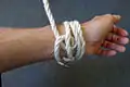 1. Wind the running end several times round the object to be tied, leaving enough running end for one further turn.