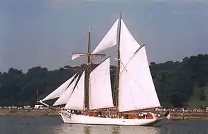 Étoile ("star") is a French naval schooner used as a training vessel. She was built in 1932 as a replica of a cod fishing vessel used off Iceland, as a training ship of the students of the École navale.[1] During the Second World War, Étoile sailed to the United Kingdom after the Fall of France and was used by the Free French Naval Forces, returning to Brest in 1945. The schooner as well as her sister ship Belle Poule are still used by the École Navale as training ships in European waters.