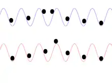 The model was independently proposed by Yakov Frenkel and Tatiana Kontorova in their 1938 article On the theory of plastic deformation and twinning to describe the dynamics of a crystal lattice near a dislocation and to describe crystal twinning.[4] In the standard linear harmonic chain any displacement of the atoms will result in waves, and the only stable configuration will be the trivial one. For the nonlinear chain of Frenkel and Kontorova, there exist stable configurations beside the trivial one. For small atomic displacements the situation resembles the linear chain; however, for large enough displacements, it is possible to create a moving single dislocation, for which an analytical solution was derived by Frenkel and Kontorova.[6] The shape of these dislocations is defined only by the parameters of the system such as the mass and the elastic constant of the springs.