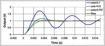 Another goal of frequency compensation is to control the step response of an amplifier circuit as shown in Figure 1. For example, if a step in voltage is input to a voltage amplifier, ideally a step in output voltage would occur. However, the output is not ideal because of the frequency response of the amplifier, and ringing occurs. Several figures of merit to describe the adequacy of step response are in common use. One is the rise time of the output, which ideally would be short. A second is the time for the output to lock into its final value, which again should be short. The success in reaching this lock-in at final value is described by overshoot (how far the response exceeds final value) and settling time (how long the output swings back and forth about its final value). These various measures of the step response usually conflict with one another, requiring optimization methods.